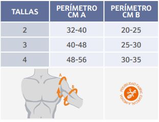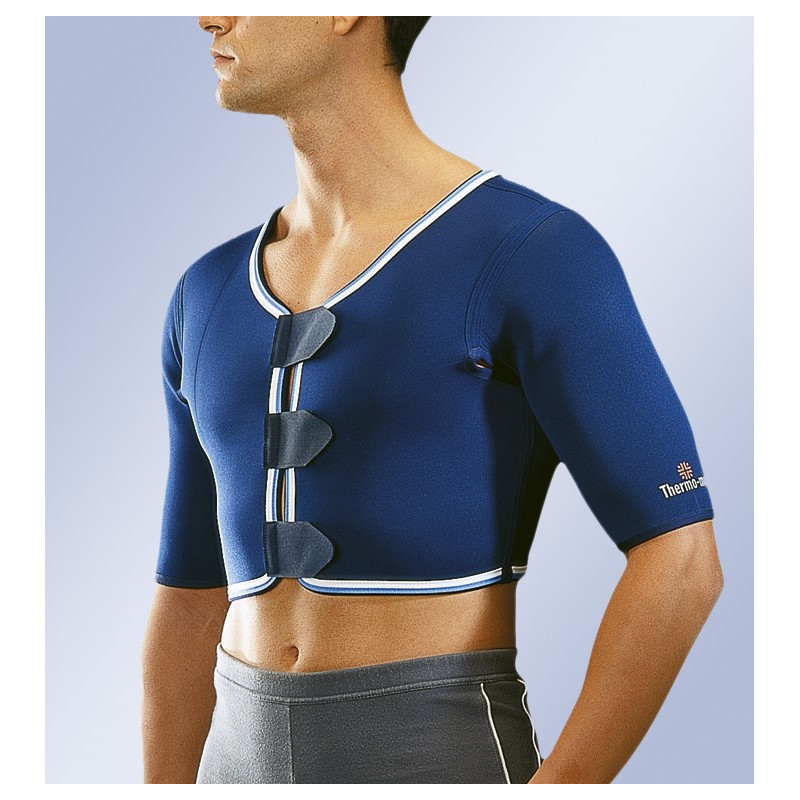Hombrera de neopreno doble en 3 mm, en forma de chaleco y cierre anterior de velcro.
