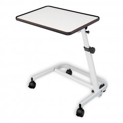 Elegante mesita graduable en altura y plegable. El tablero bascula hasta 90º en ambos sentidos y la mesa se pliega quedando plana para guardarla o transportarla. Además el mástil bascula hasta 80º para acercarlo más al usuario si es necesario. Suministrada con cuatro ruedas, dos de ellas con freno.